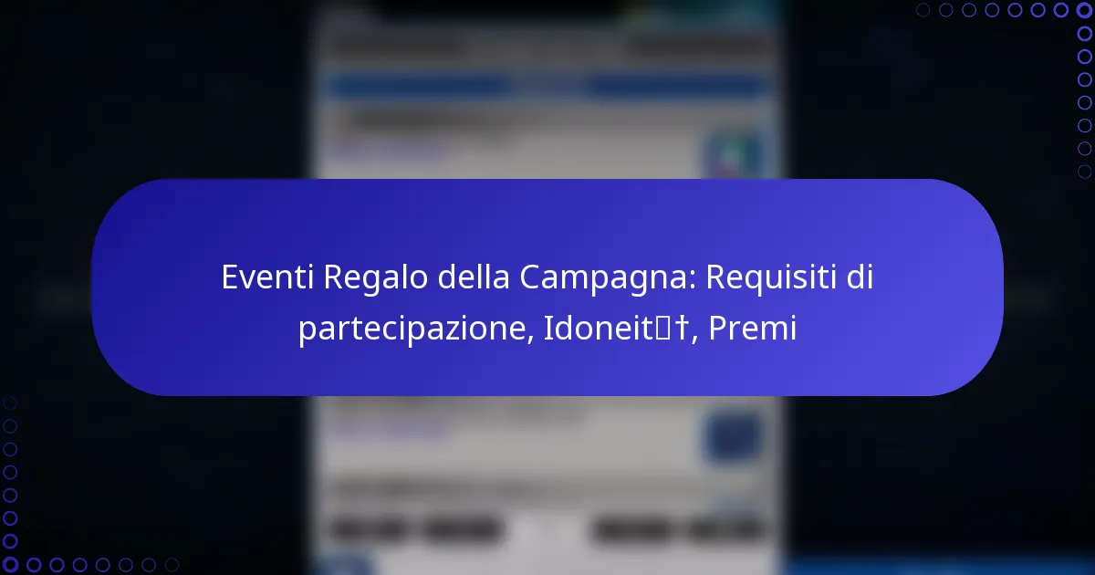 Per partecipare agli Eventi Regalo della Campagna, gli individui devono soddisfare requisiti specifici che includono registrazione, azioni qualificanti e rispetto delle scadenze. L’idoneità può anche dipendere dalla posizione geografica e dallo stato dell’account.